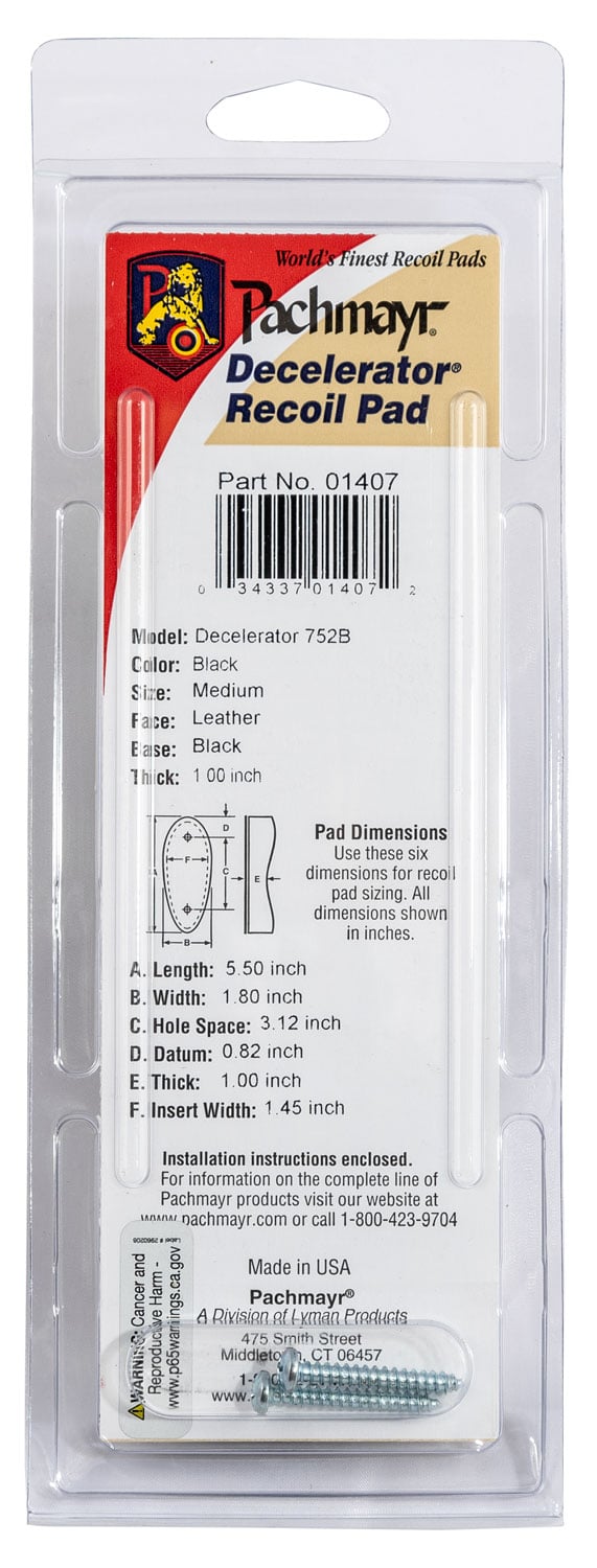 Pachmayr Butt Pad, Decelerator, Fits 1" Med, Black 1407