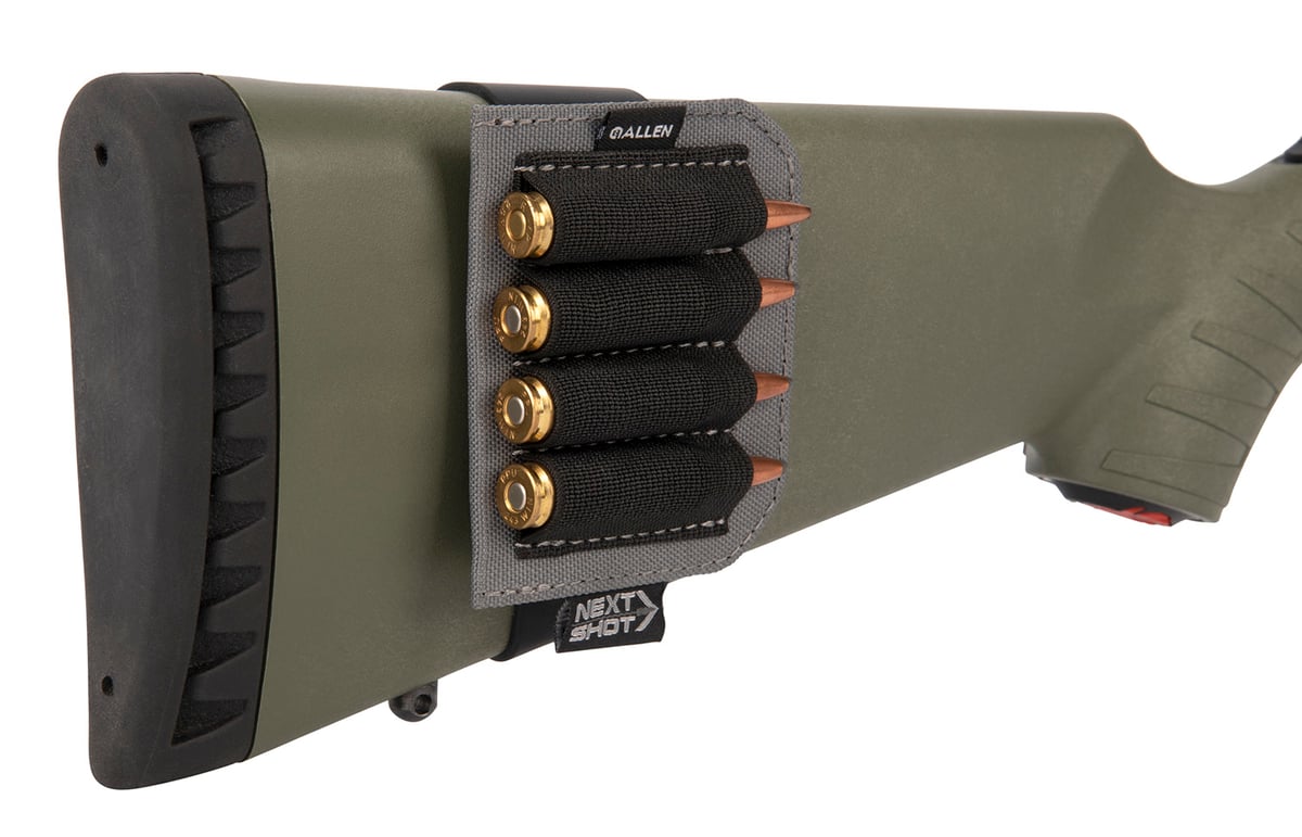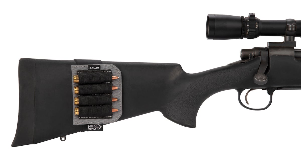 Allen Company Next Shot, Buttstock Shell Holder, Black and Gray, Holds up to (4) .223-300 Winchester Magnum Rifle Cartridges 8208